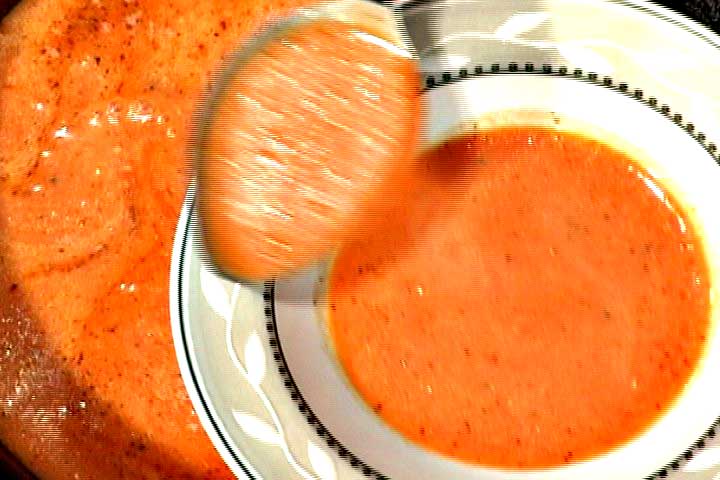 There are health benefits to this tomato soup as it is high in Lycopene. Lycopene is an antioxidant that is not made in the body, so we need to eat vegetables that have good source of Lycopene in them. And tomatoes are one of those vegetables that are very high in natural Lycopene. Studies have shown that Lycopene can guard against cancer, especially prostate cancer in men, and cancer of the digestive tract, colon and lungs. Lycopene guards against aging of the skin and can be helpful with diabetes and cardiovascular problems.